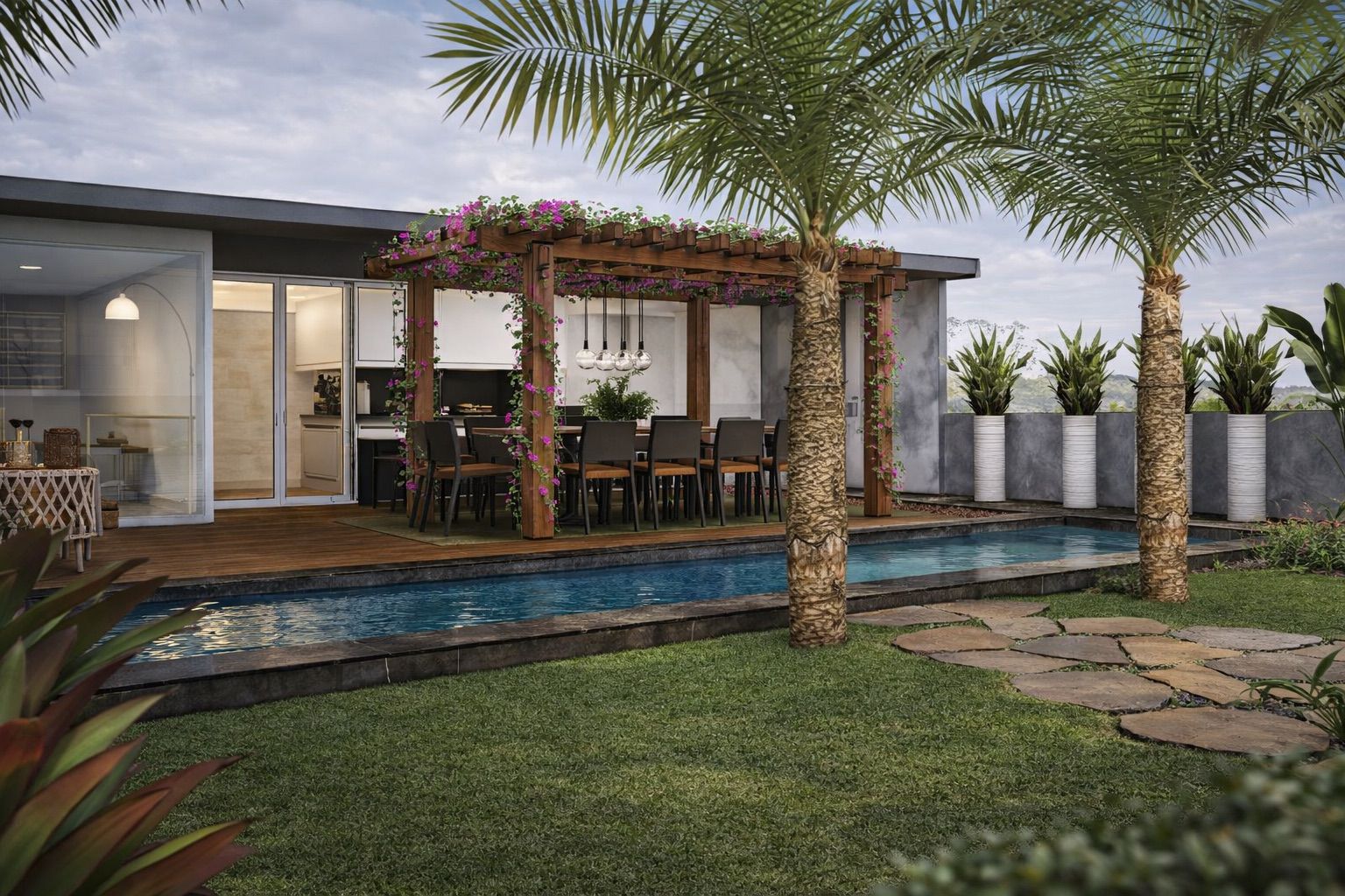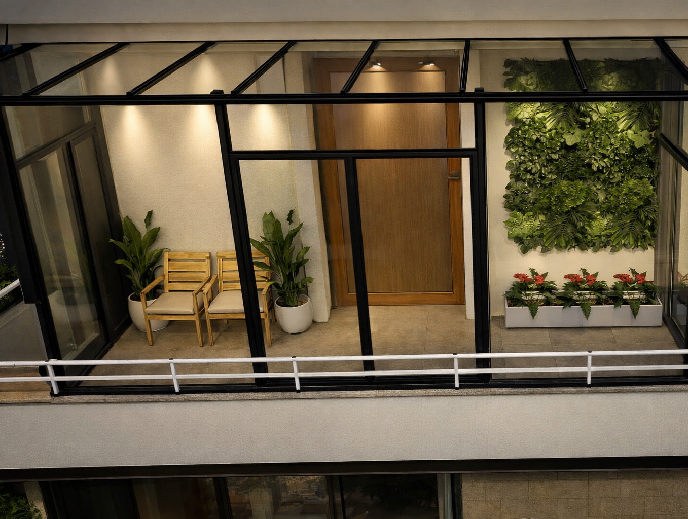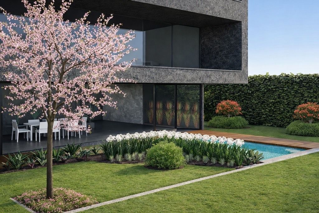 Projeto paisagístico, jardim vertical. Apresentação em 3D