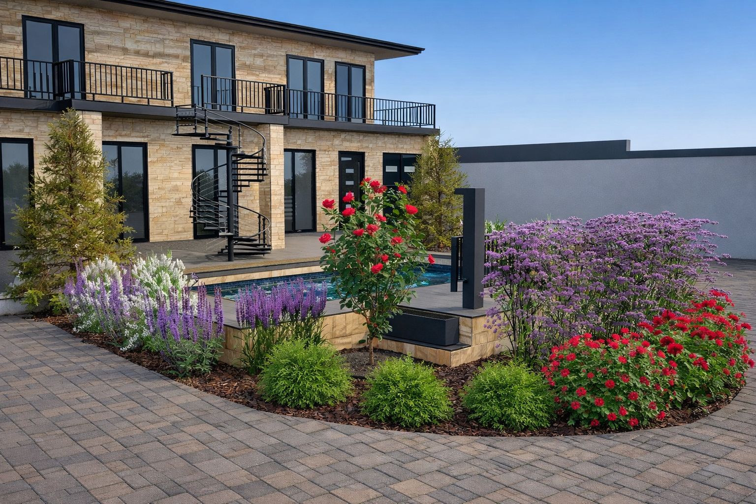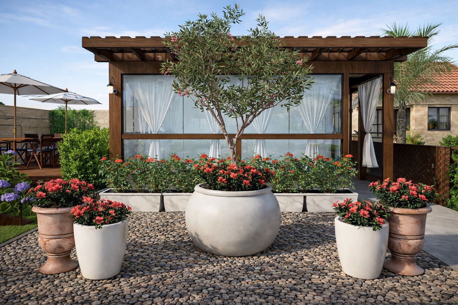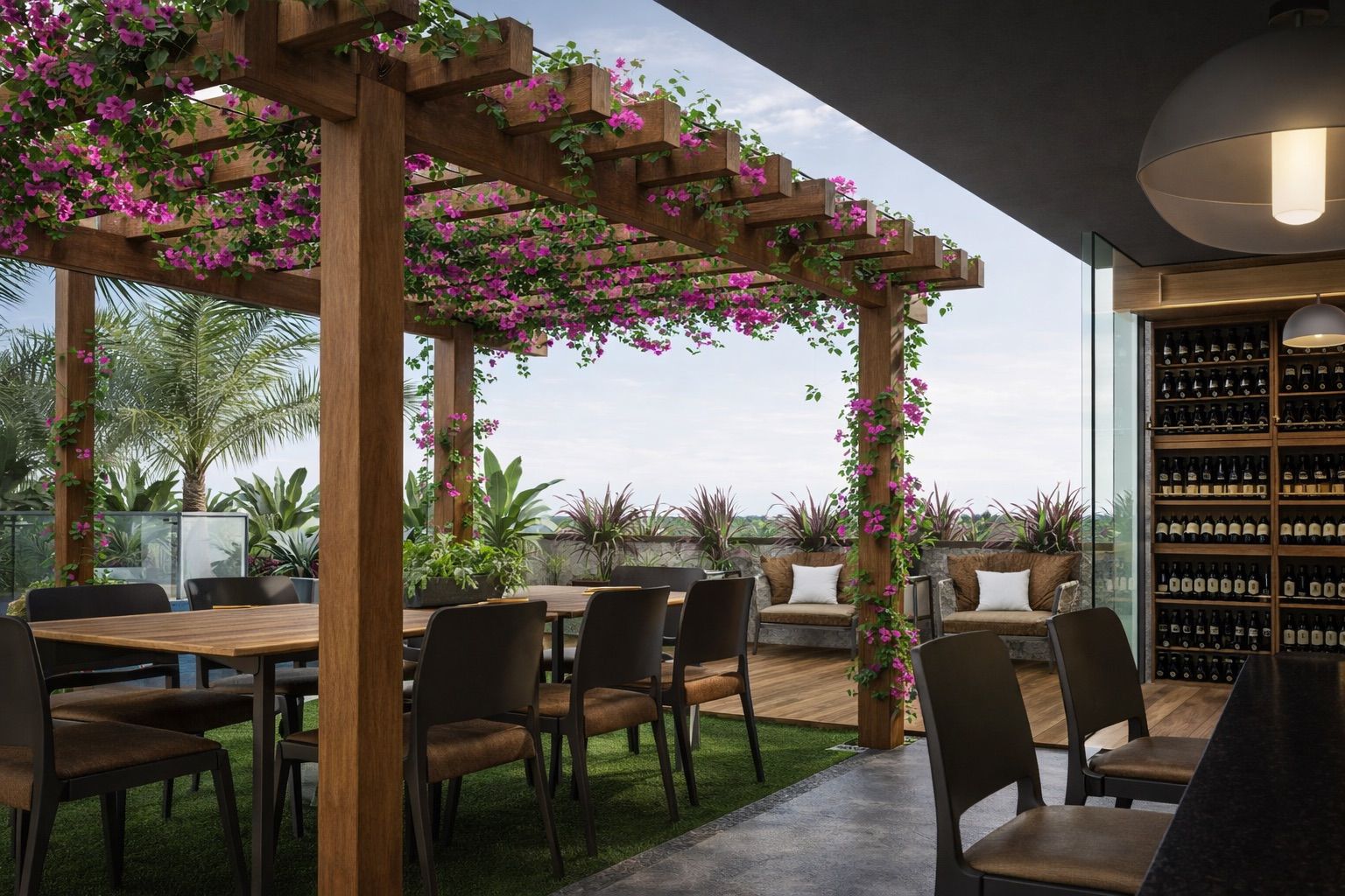 Projeto paisagístico, jardim vertical. Apresentação em 3D